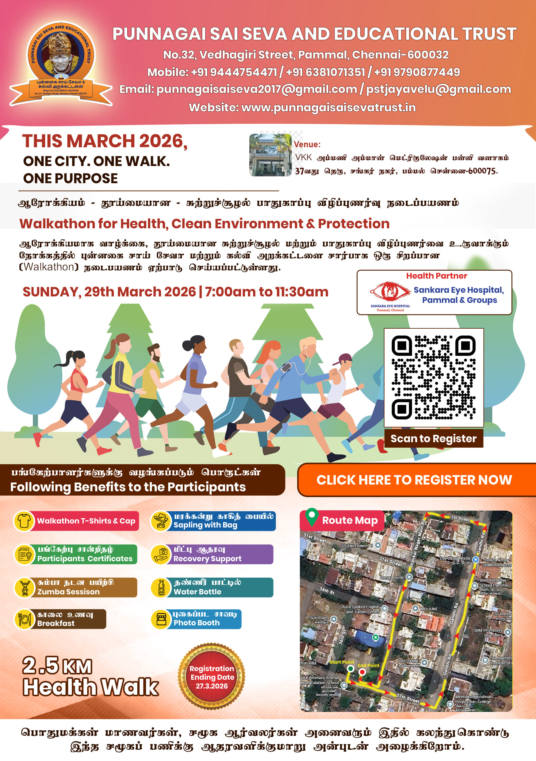 Punnagai Sai Seva Trust receiving so many requests from Poor and Needy people. In this regard the following changes in Membership amount for Online members and Executive members with effect from 01.01.2021. Existing Members are requested to renewal of their membership and get T.Shirt and New year Gifts for 2021.