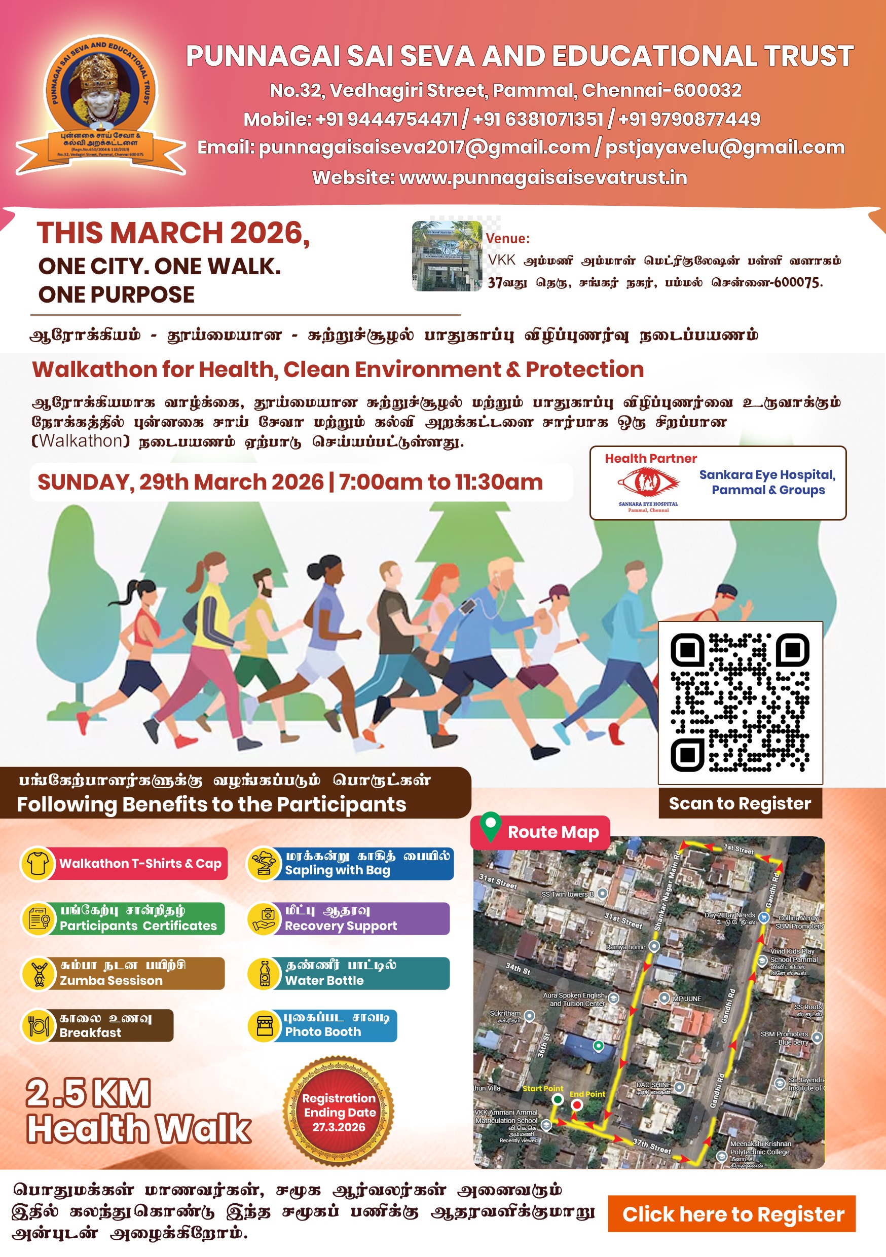 Punnagai Sai Seva Trust receiving so many requests from Poor and Needy people. In this regard the following changes in Membership amount for Online members and Executive members with effect from 01.01.2021. Existing Members are requested to renewal of their membership and get T.Shirt and New year Gifts for 2021.